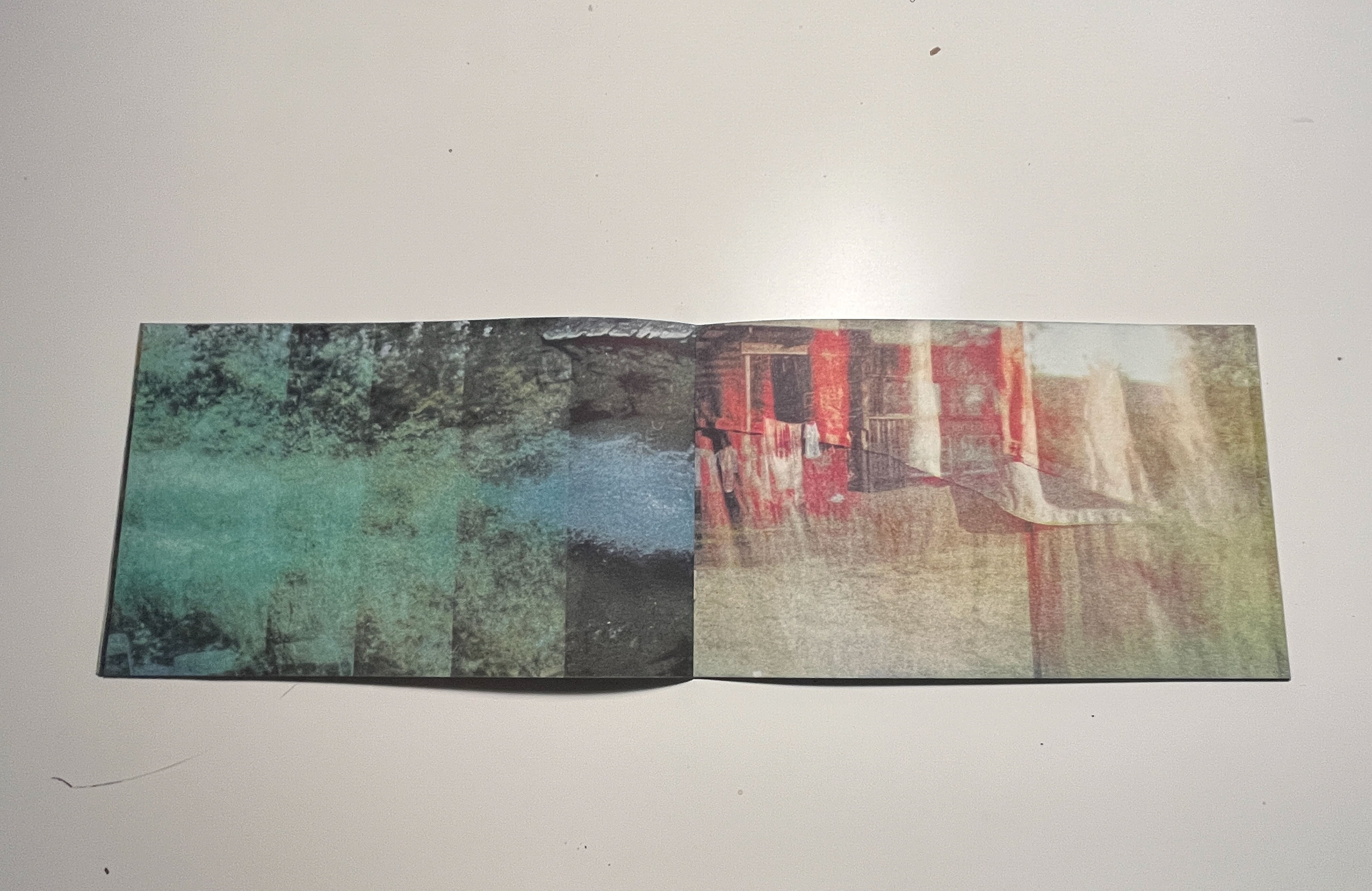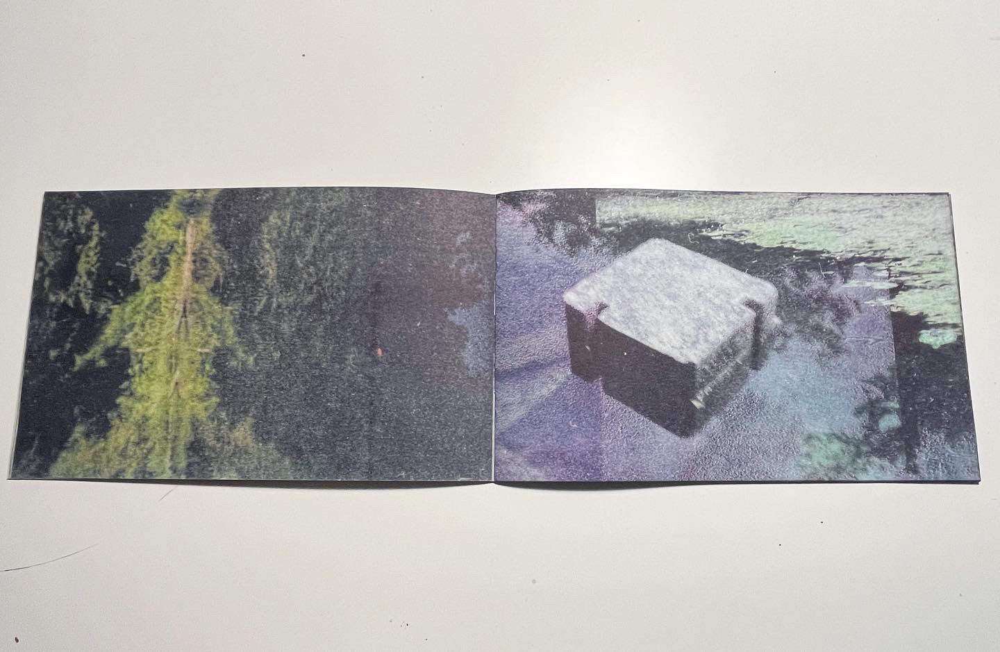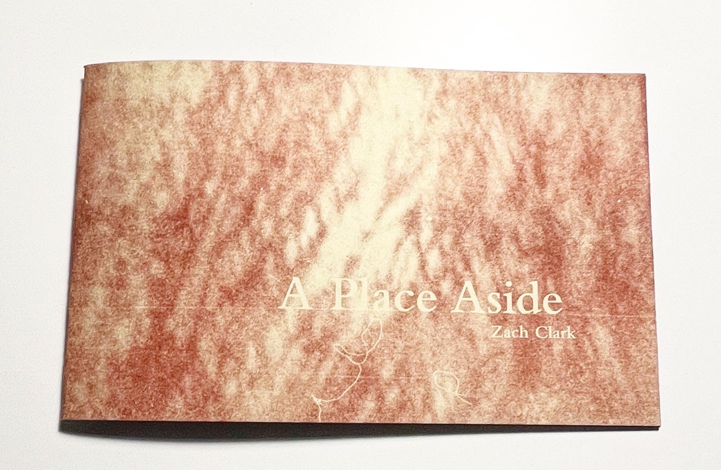 A Place Aside is printed in Sky Blue, Sunflower, Turquoise, Brick, Flo Pink, Light Lime, and Midnight Inks. on French Paper with a Risograph MZ1090, across 24 pages, measuring 8x5", in an edition of 200, October 2022