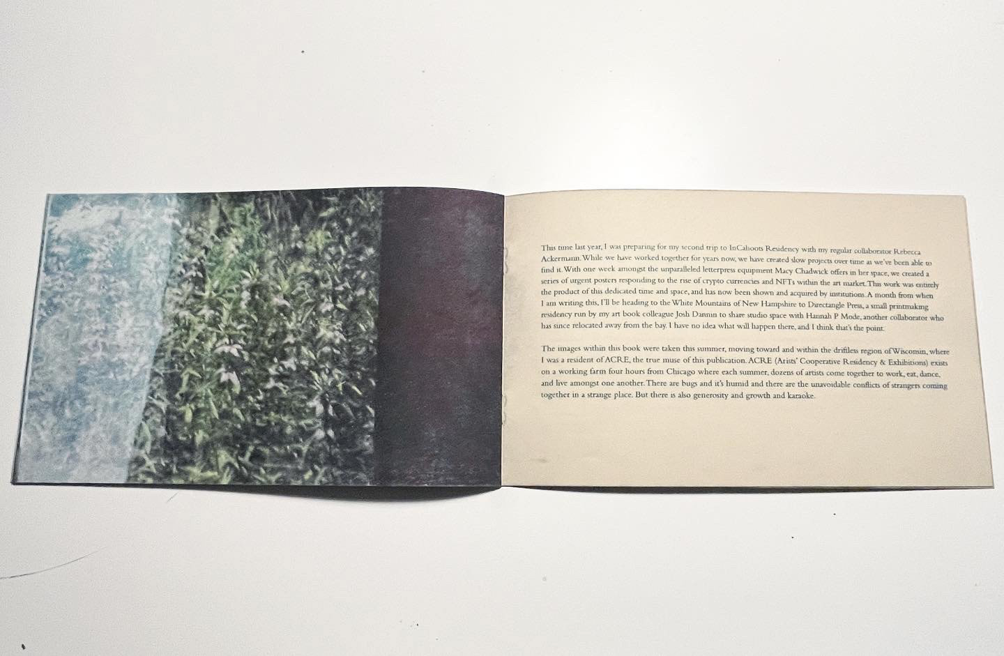A Place Aside is a meditation on how much of the creation of art exists outside of the "real world", and the importance of residencies and other artist spaces. The images were taken predominantly on the way to and while at ACRE Artist Residency in the driftless region of Wisconsin