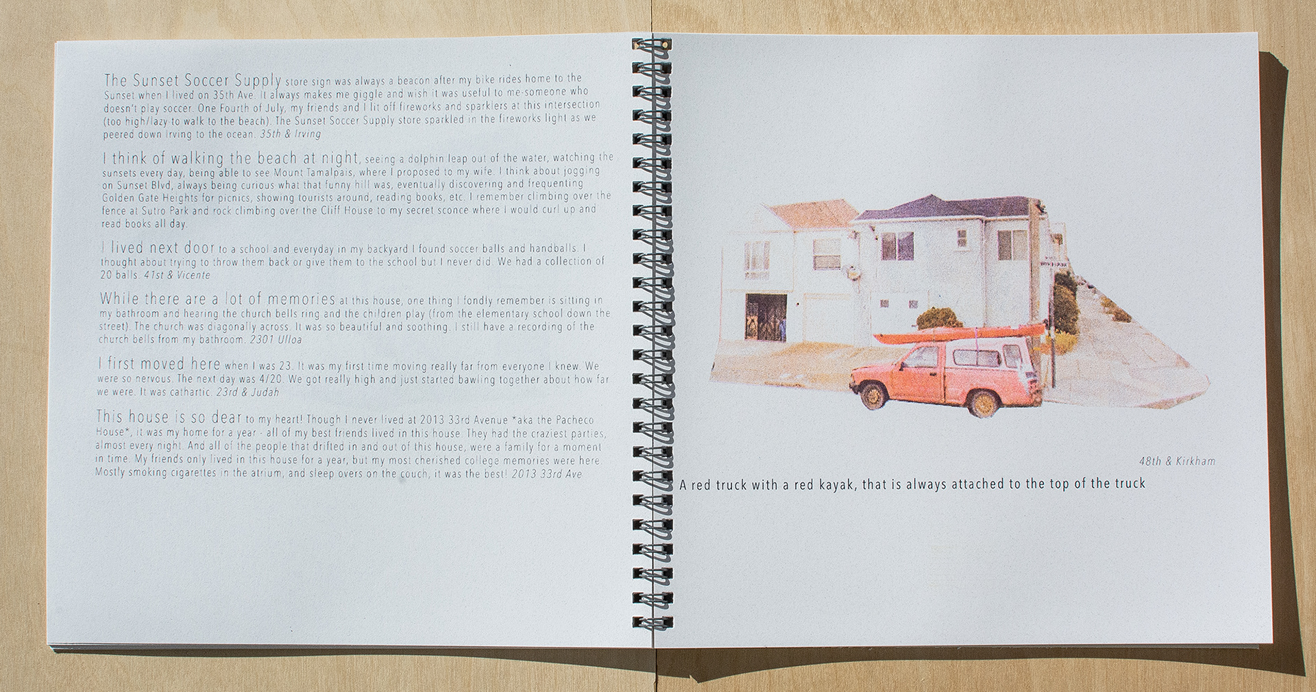 All stories from the project come directly from people in their own words. What they chose to share about their time in this place is collected in this book.