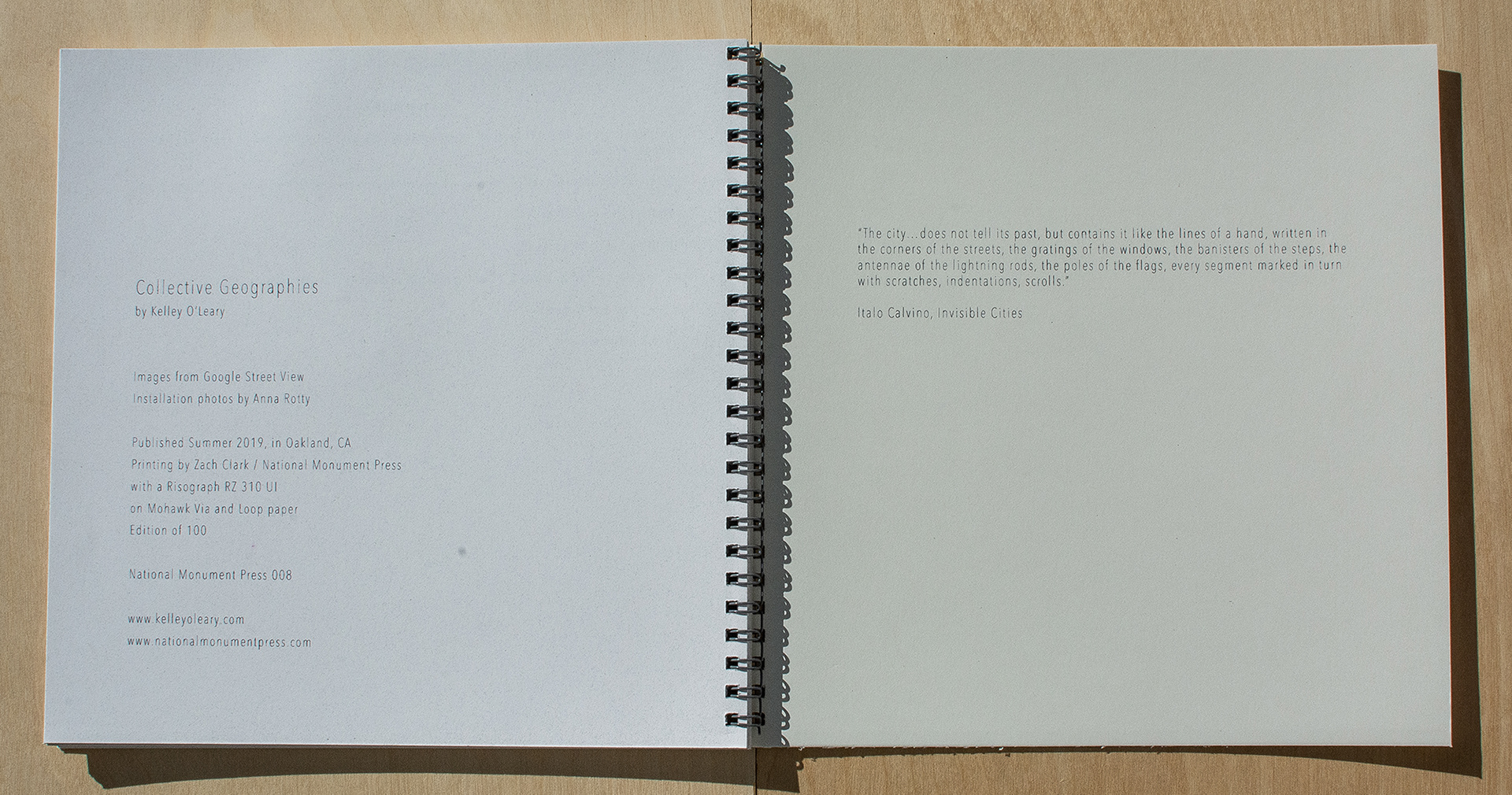 Published Summer 2019, in Oakland, CA. Six color risograph book, printed with am RZ 310 UI in seafoam, midnight, flo pink, sky blue, sunflower, and olive, on Mohawk paper. 90 pages, edition of 100. Purchase here.