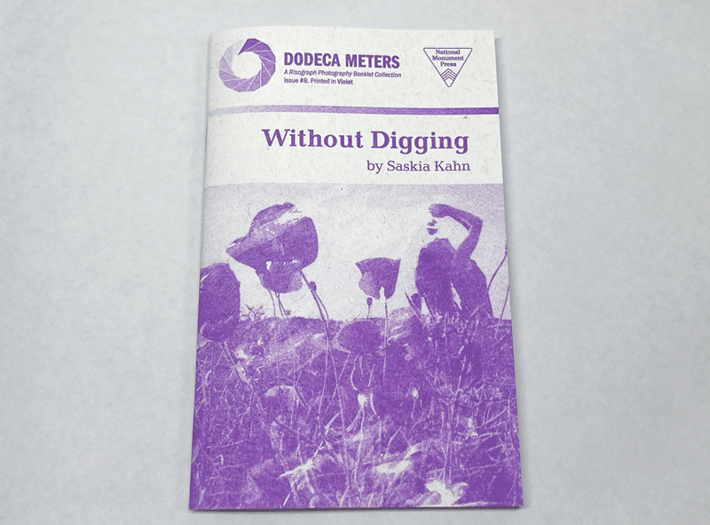 Without Digging is 32 pages, risograph printed in Violet on Domtar & French paper with an SF9450. 5x8". Edition of 200 +25.