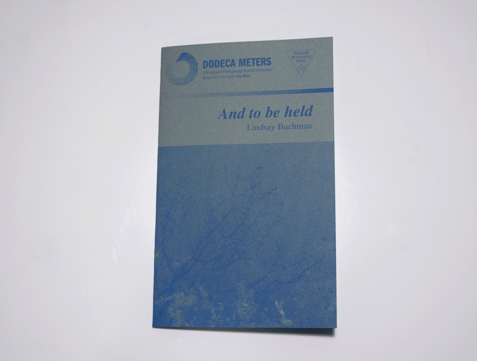 And to be held is 36 pages, risograph printed in Sky Blue on French Starch Rain and Blue Steel papers. 5x8". Edition of 200 +25.