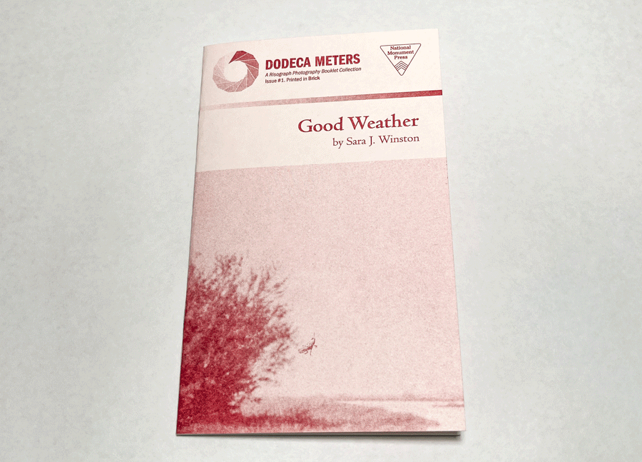 Good Weather is 28 pages, risograph printed in Brick on Domtar and French papers. 5x8". Edition of 200 +25. Published January 2024.