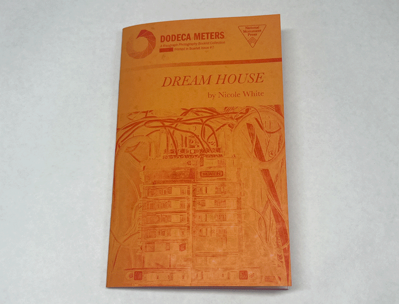 Dream House is 36 pages, risograph printed in Scarlet on Domtar & French paper with an SF9450. 5x8". Edition of 200 +25.