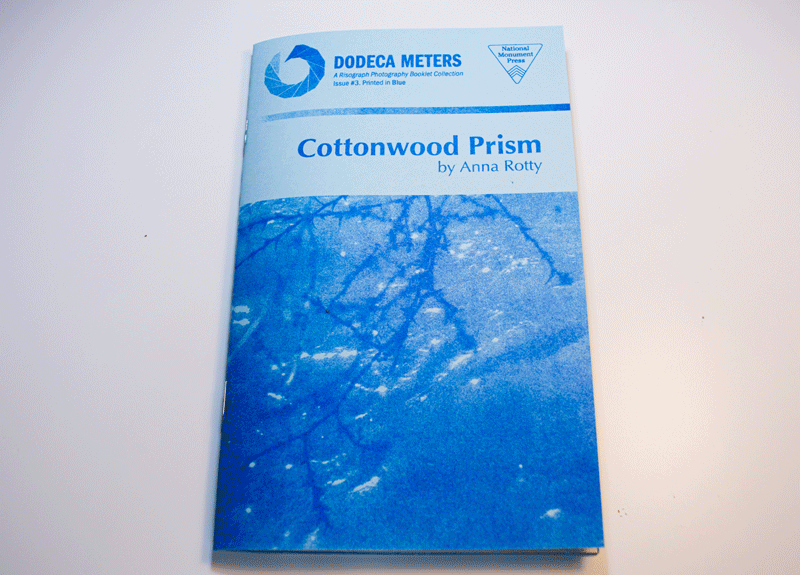Cottonwood Prism is 24 pages, risograph printed in Blue on French Natural Kraft and Springhill Blue paper. 5x8". Edition of 200 +25.