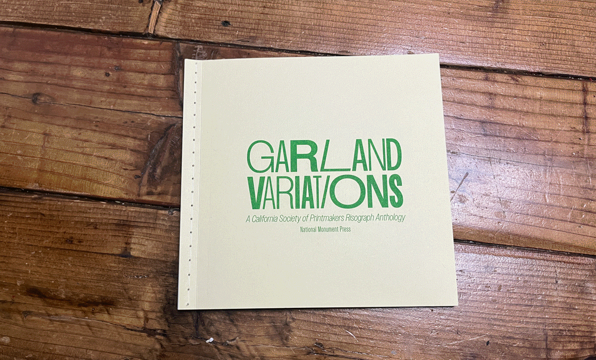 Garland Variations is a Risograph Anthology publication, featuring seven artist members of the California Society of Printmakers. The anthology publication has an established history within comics, and thus is a familiar format within the Riso community, showcasing a brief selection of work by a collection of artists. Anthology publications find their roots within poetry, where the earliest collections were referred to as “garlands”. The moniker alludes to the act of selecting and arranging the finest flowers into a singular form, much like the editor would intentionally select works by chosen poets. Across these seven Northern California based artists, the natural world is a running theme, creating their own garlands as a cohort.