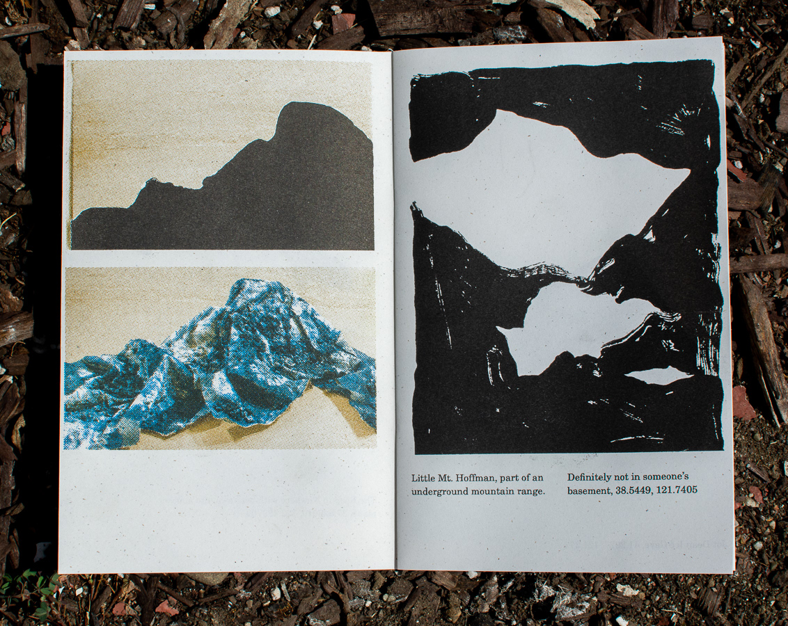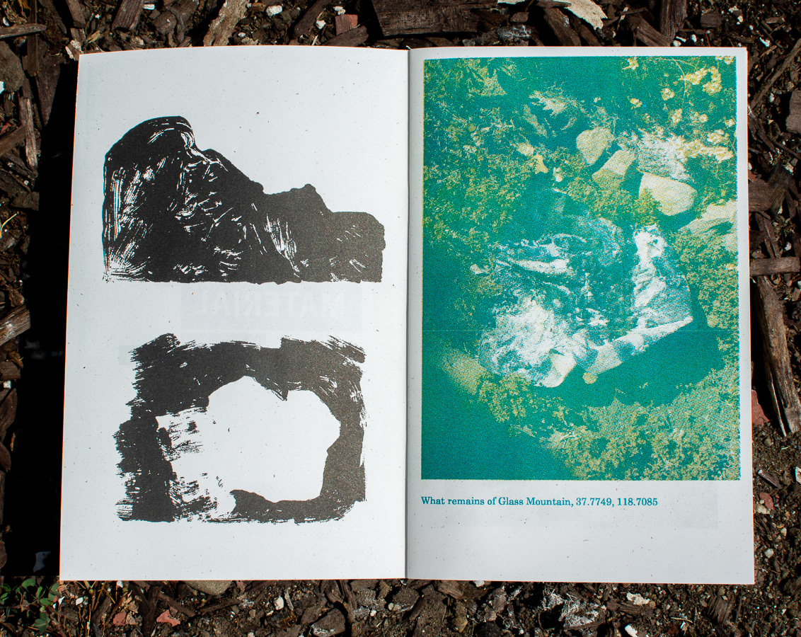 Published April / May 2018, in Oakland, CA. Images and words by Faith Sponsler. Printing by Zach Clark / National Monument Press. Printed with a Risograph RZ 310 UI & RZ 220. Centerfold printed with a Challenge proofing press. National Monument Press 004