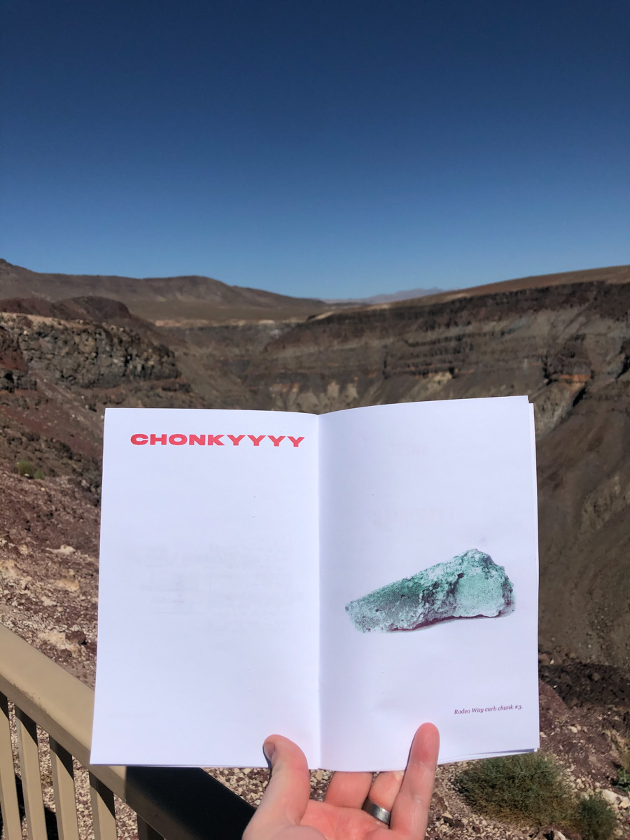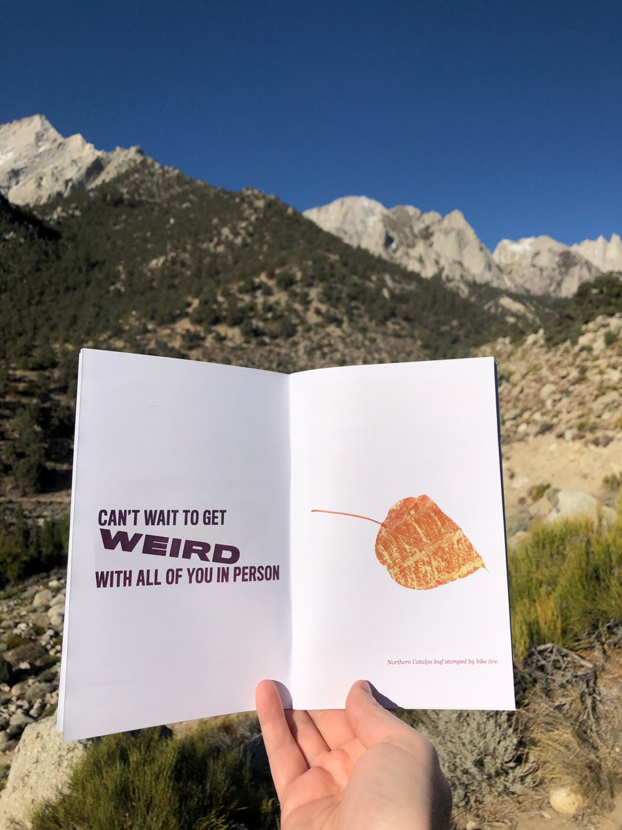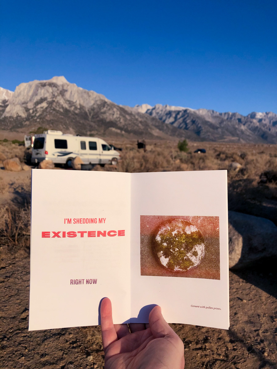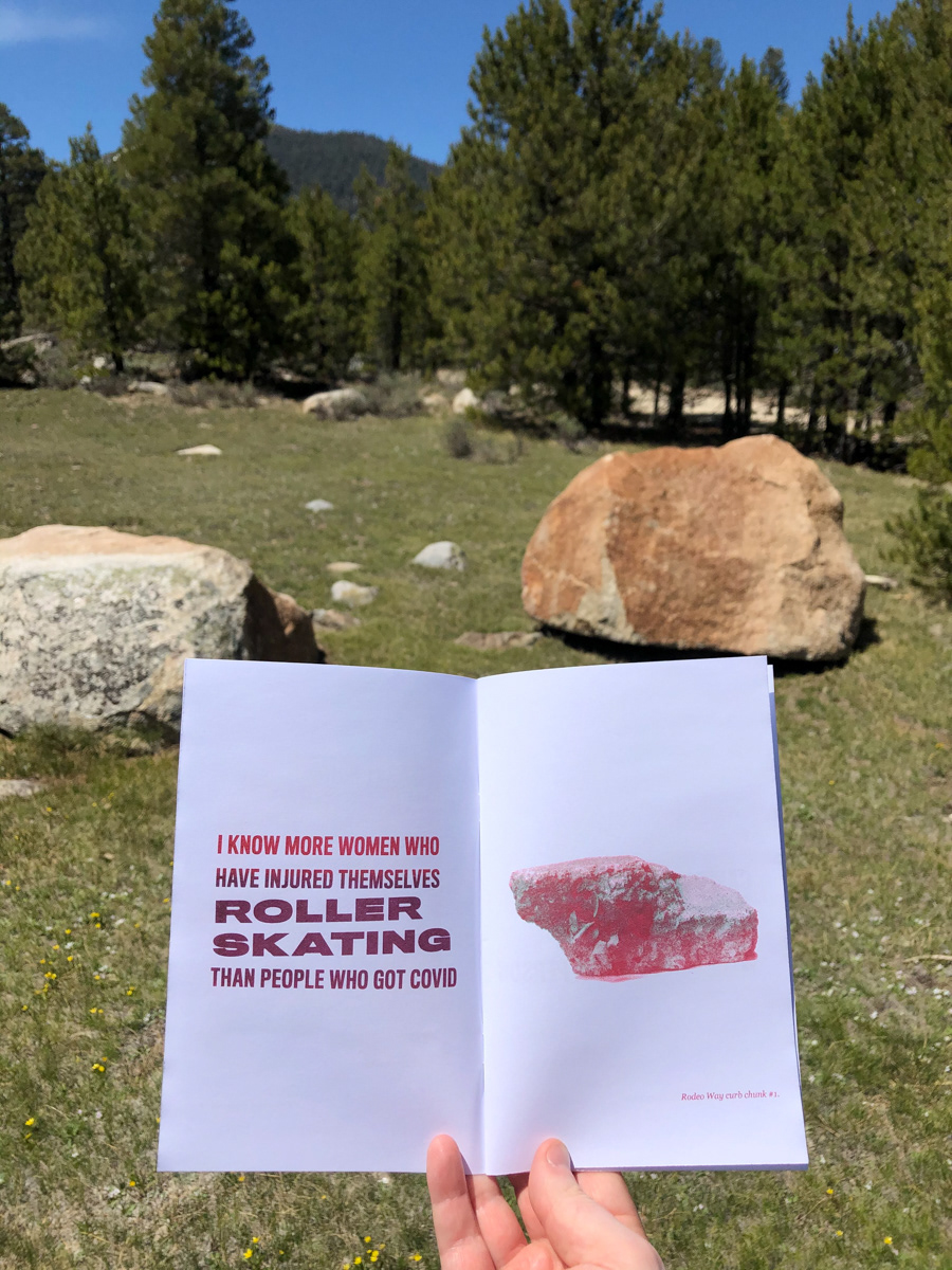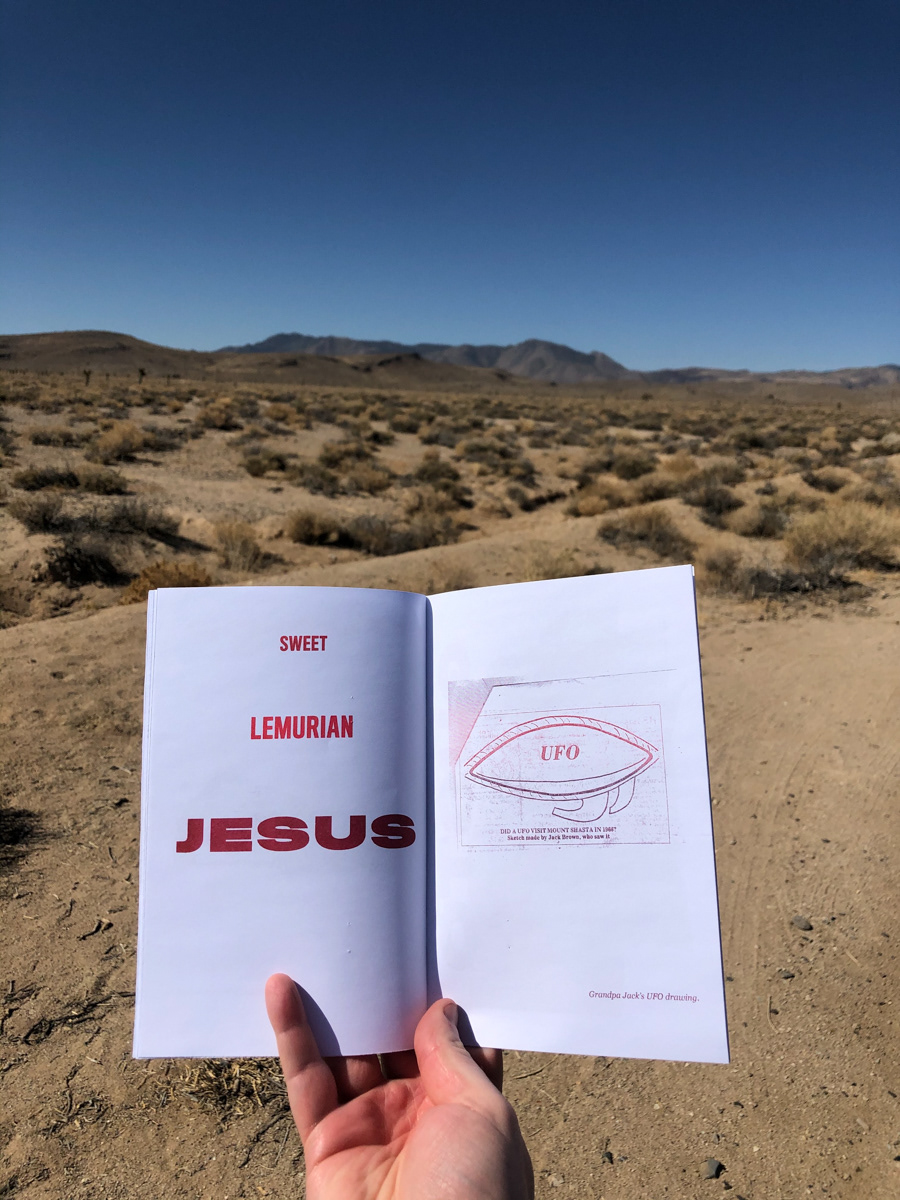 "This book was made between the months of April and October of 2020. Prior to the Pandemic, I had plans to make work involving ideas about souvenirs informed by travels I had planned throughout the year. Those travel plans obviously didn't happen, so I started collecting objects and images from time spent at home, which was all the time. Another kind of souvenir I began collecting were out of context test messages from my close friend group chat, called the Lemuria Seekers. This group chat served as one of the only sources of joy and connection during that time. " - Faith Sponsler