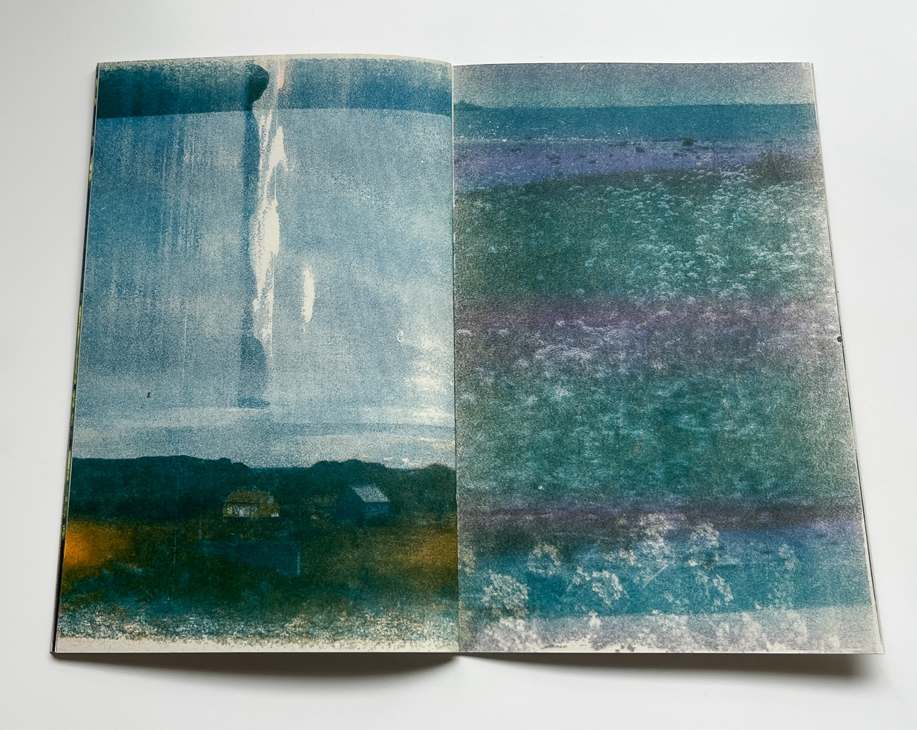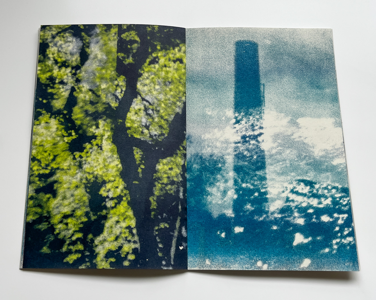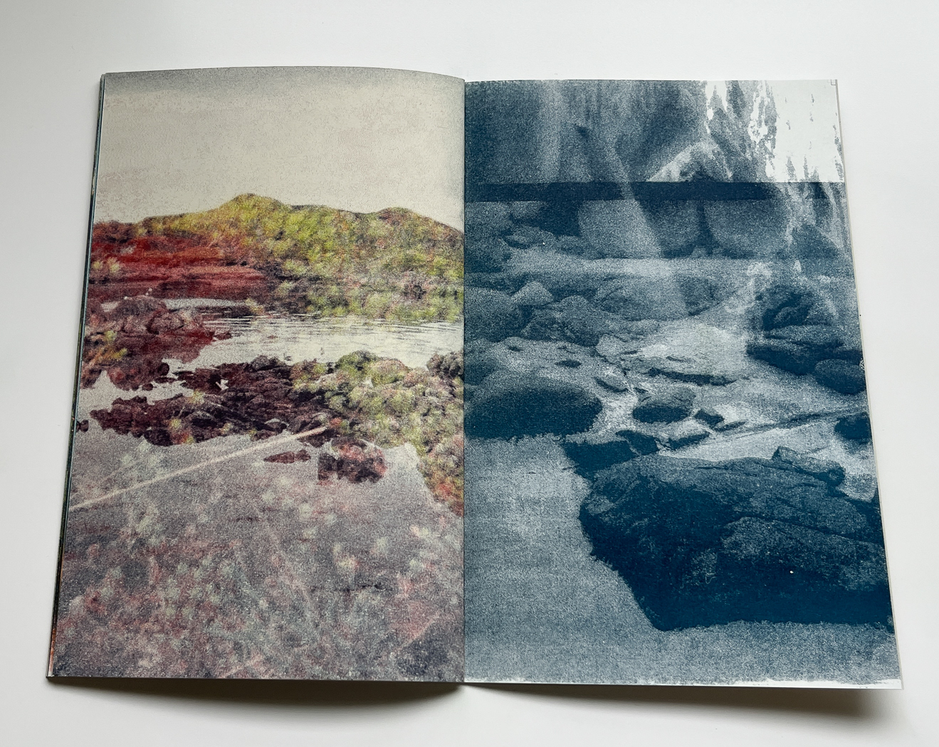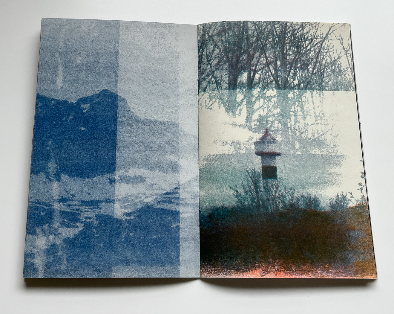 Tourist Photographs is printed on a Risograph RZ310 and MZ 1090 in 12 colors, 32 pages, in an edition of 150, 5x8", July 2022.